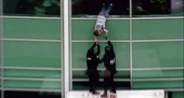 I can’t say I’m not reminded of the image of a wounded Patrick Ireland desperately trying to escape through a window during Columbine.